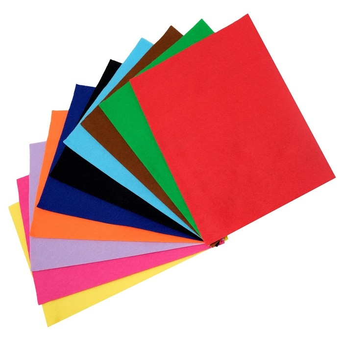 Фетр цветной набор, толщина-1 мм, формат А4, 10 листов, 10 цветов