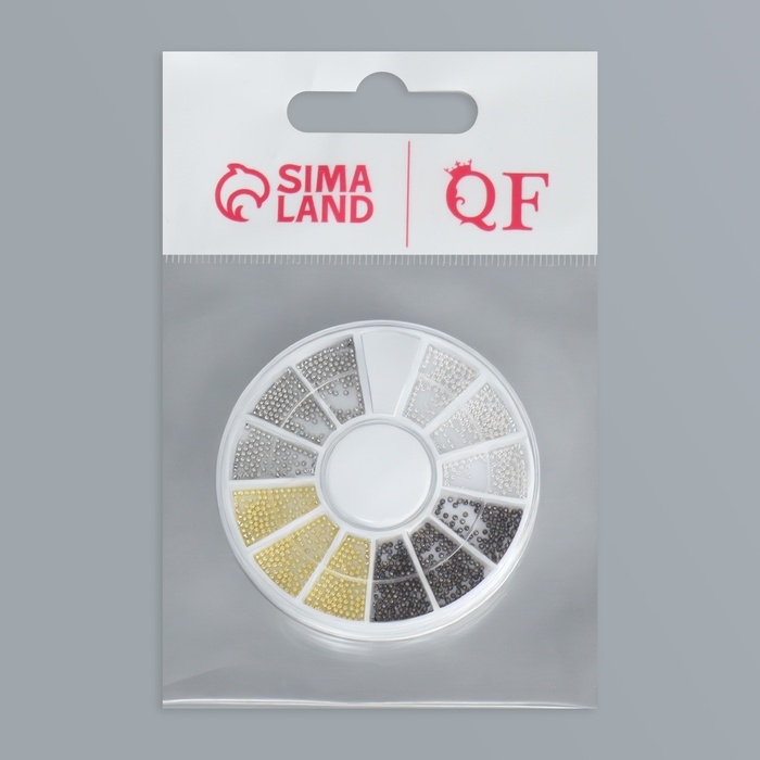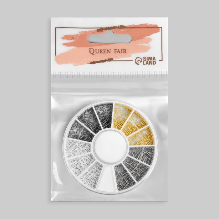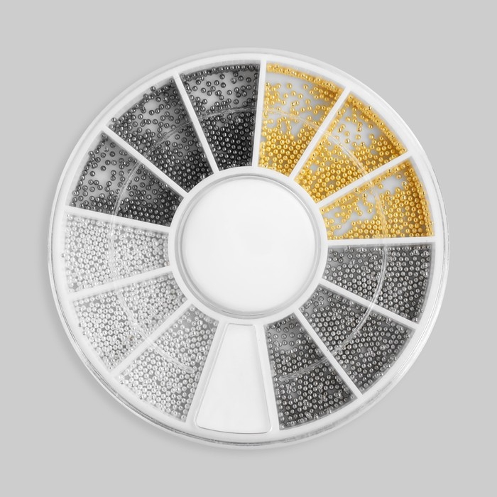 Бульонки для декора ногтей, d = 0,8 мм, 12 ячеек, цвет белый/чёрный/золотистый/серебристый