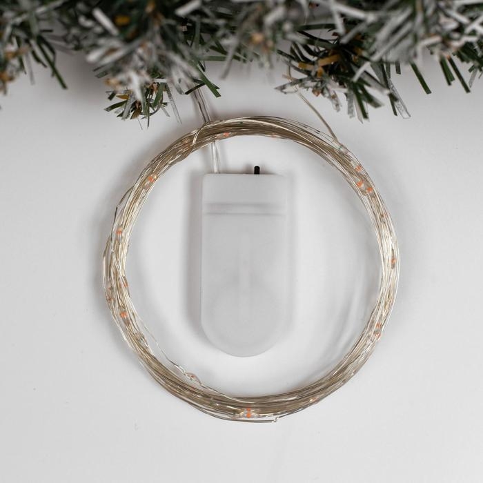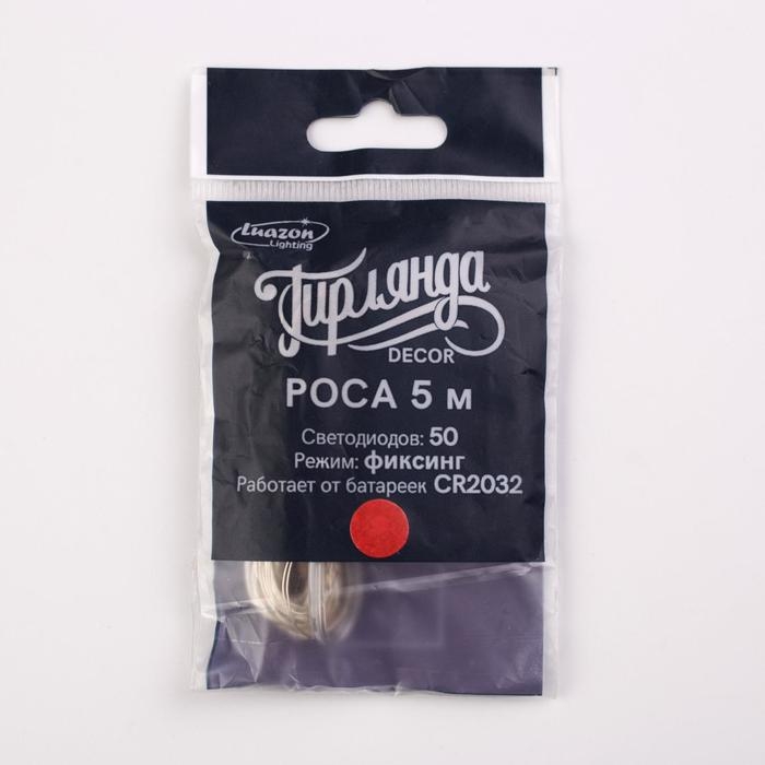 Гирлянда «Нить» 5 м роса, IP20, серебристая нить, 50 LED, батарейки CR2032х2 (в комплекте), свечение красное