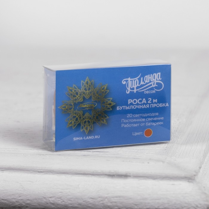 Гирлянда «Нить» 2 м роса с пробкой, IP20, серебристая нить, 20 LED, свечение красное, LR44х3