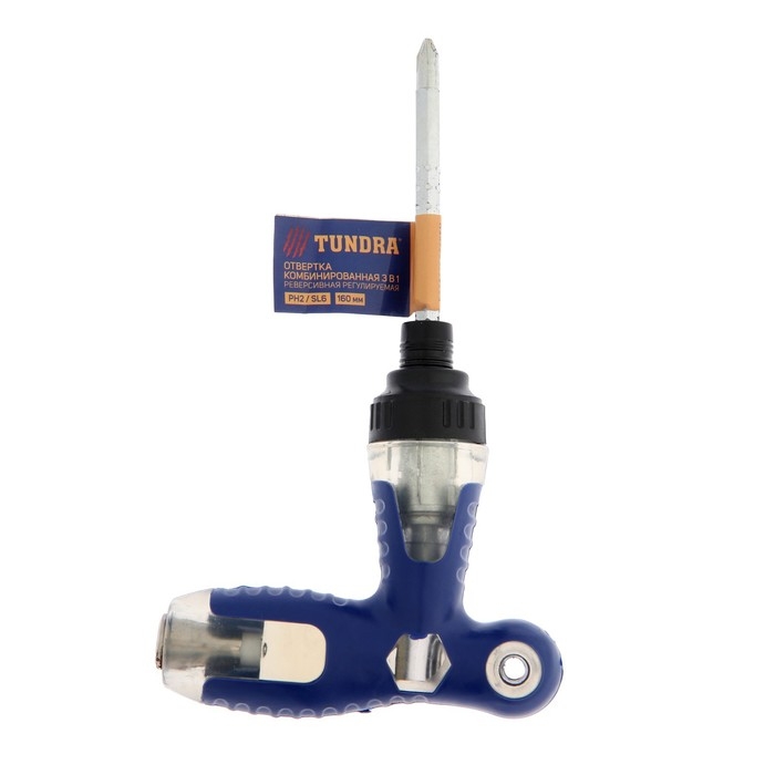 Отвертка комбинированная ТУНДРА, 3 в 1, реверс, 2К рукоятка, PH2/SL6 х 75-110 мм