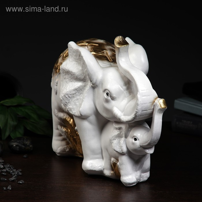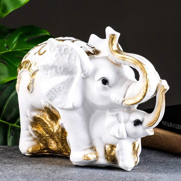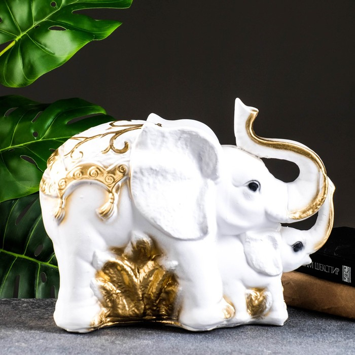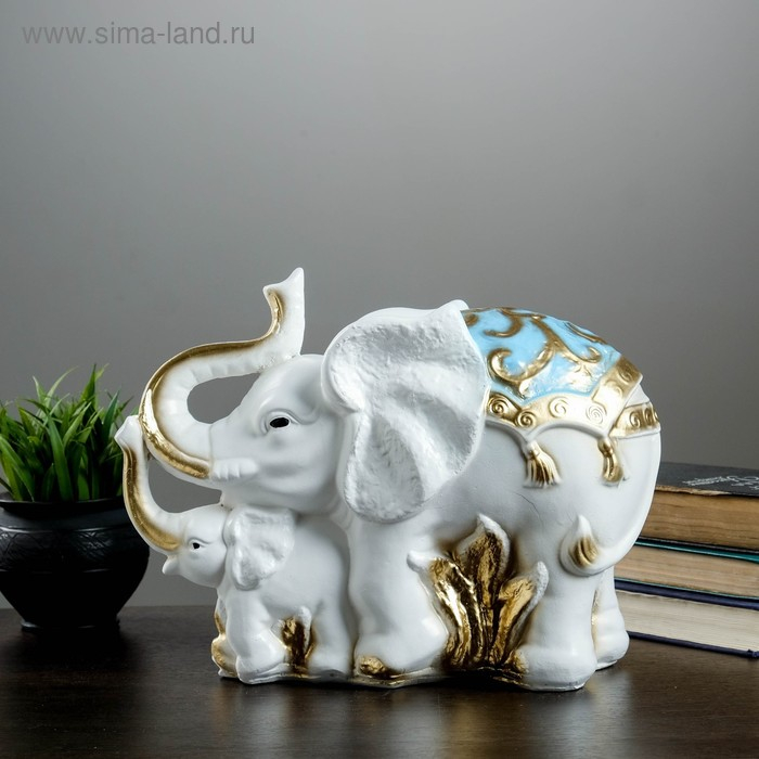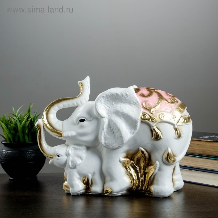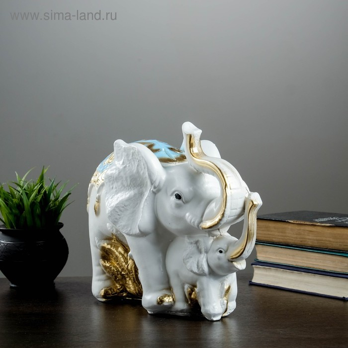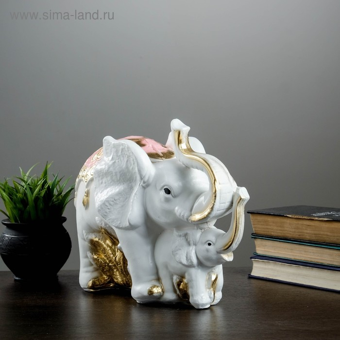 Копилка "Слон со слонёнком" золотой, 16х33х25см МИКС