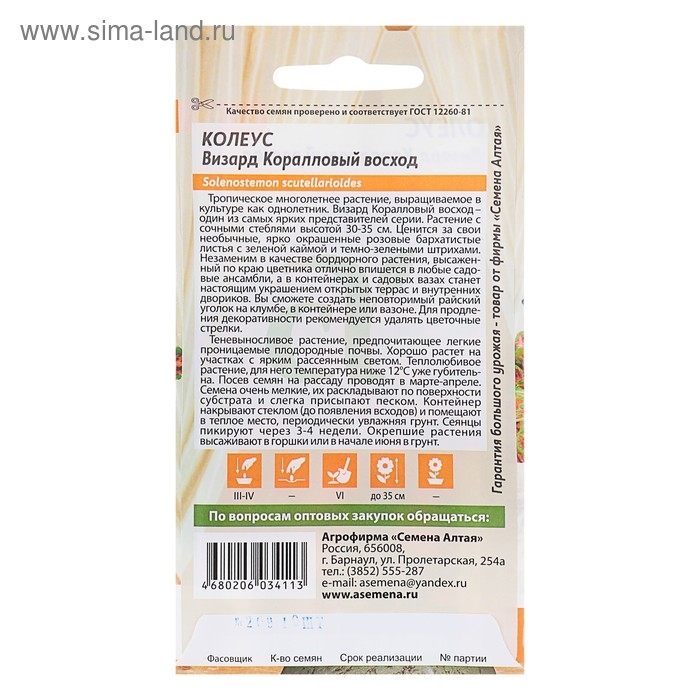 Семена комнатных цветов Колеус "Коралловый Восход", 5 шт