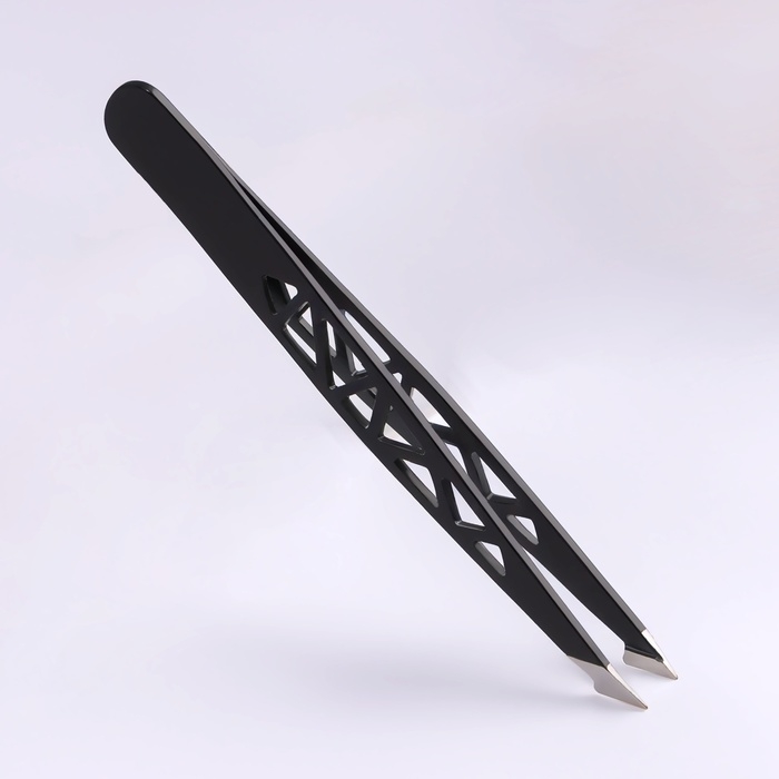 Пинцет «Геометрия», скошенный, заострённый, 9,5 см, цвет чёрный