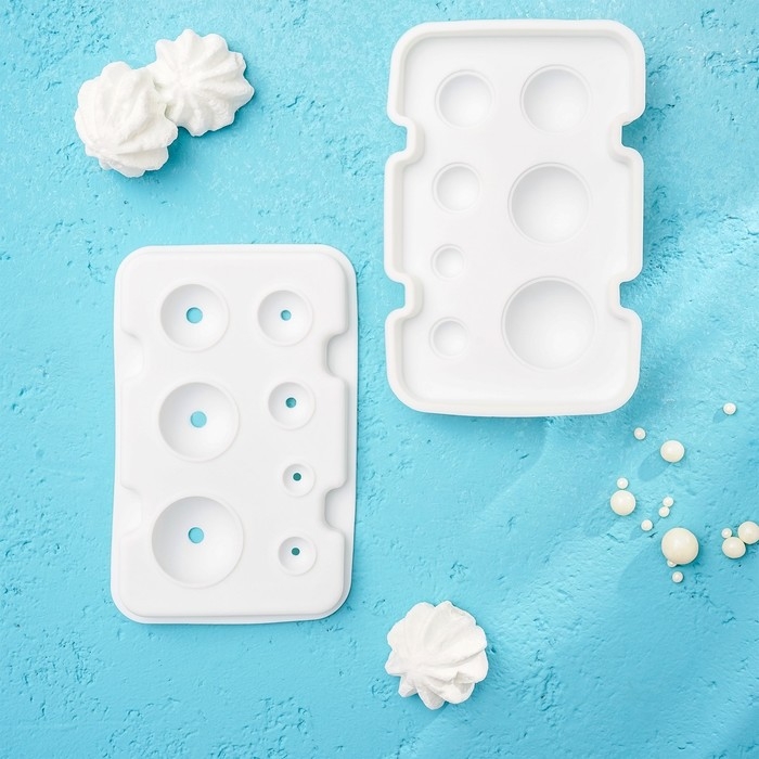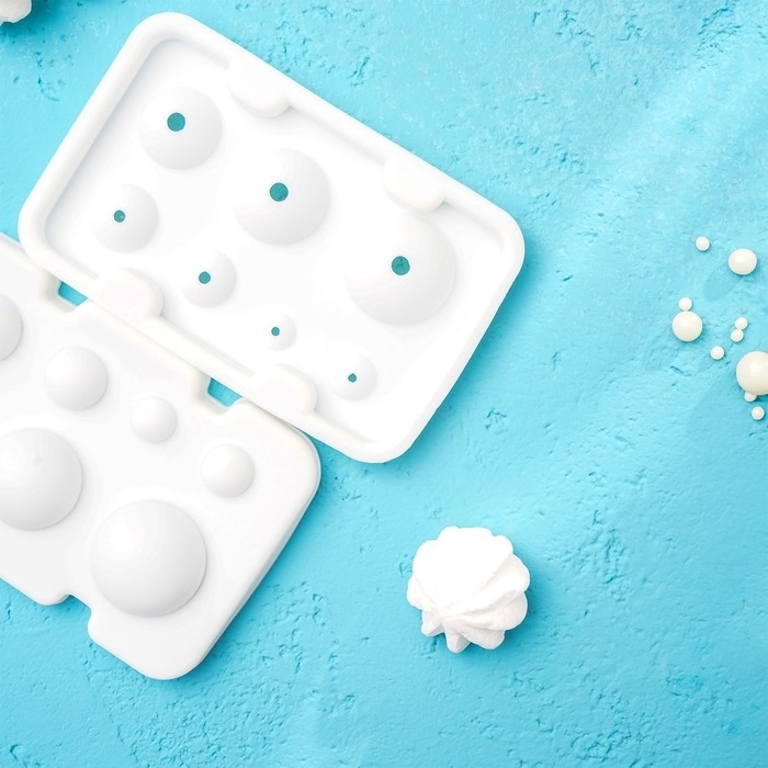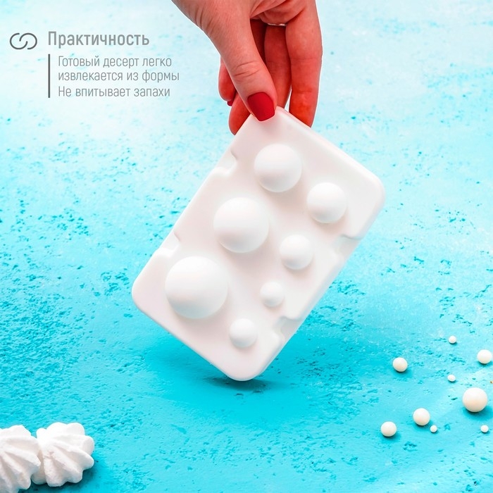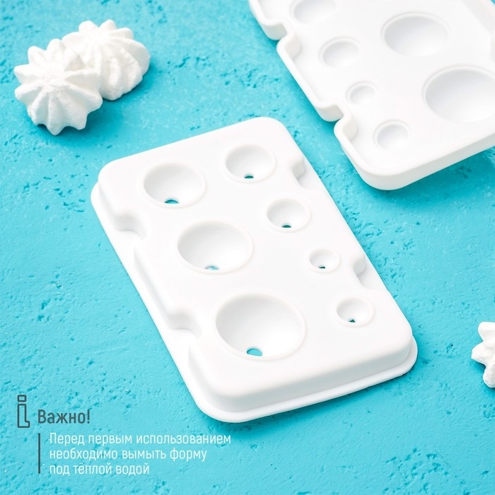 Форма для муссовых десертов и выпечки из 2 частей Доляна «Шарики», силикон, 13×8,5×3 см, 7 ячеек (d=1-3,5 см), цвет белый