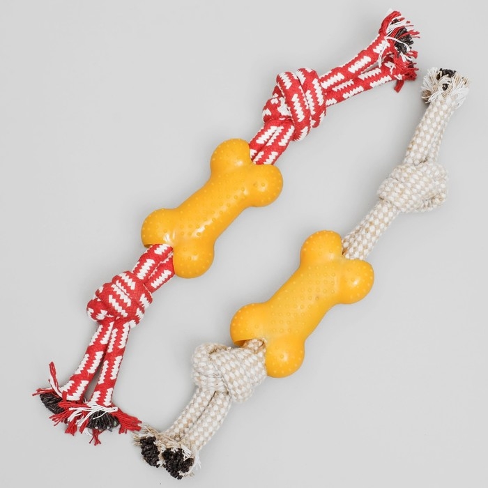 Игрушка канатная двойная с косточкой, до 30 см, до 85 г, микс цветов