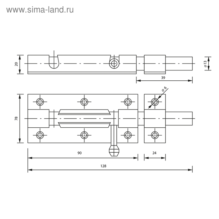 Задвижка дверная ЗД 010, 80 мм, под навесной замок, оцинкованная