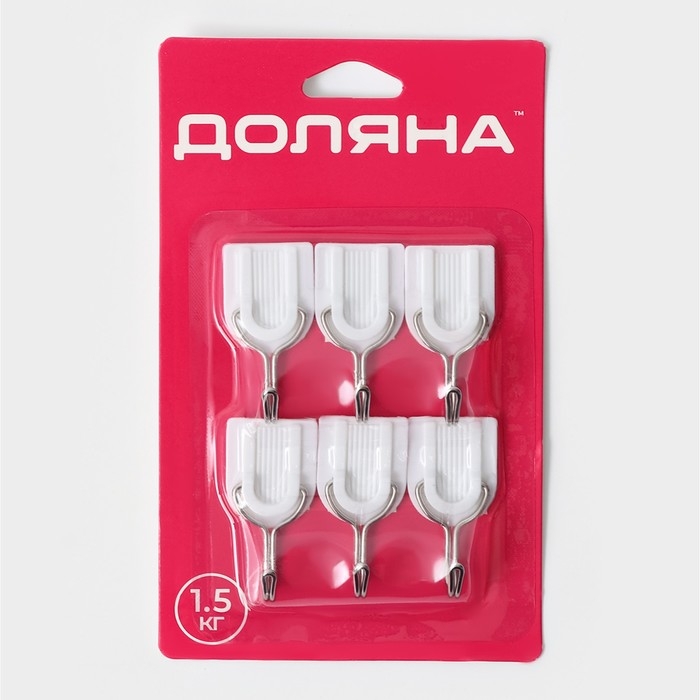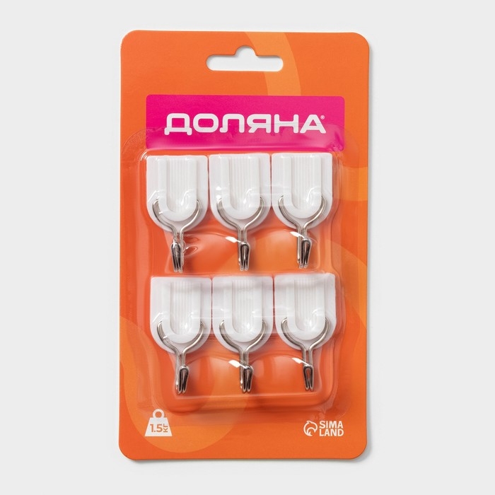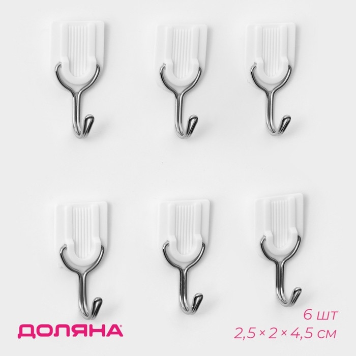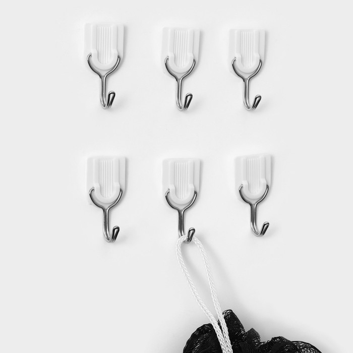 Крючки самоклеящиеся Доляна «Классика», 6 шт, цвет белый