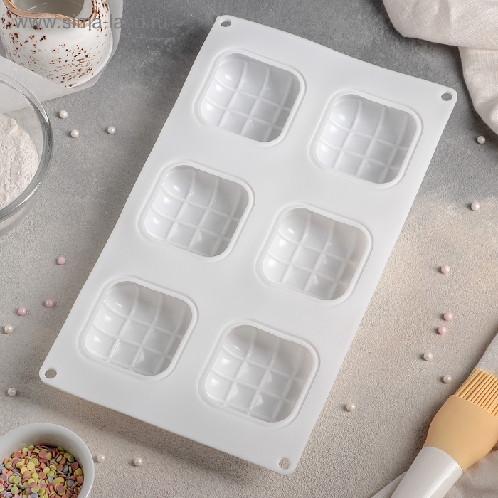Форма для муссовых десертов и выпечки Доляна «Перина», 29×17×3 см, 6 ячеек (6,5×6,5 см), цвет белый