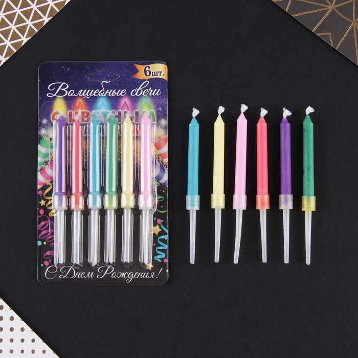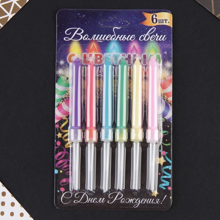 Свечи для торта с цветным пламенем «С Днем Рождения», 6 шт., 8,6 х 0,6 см