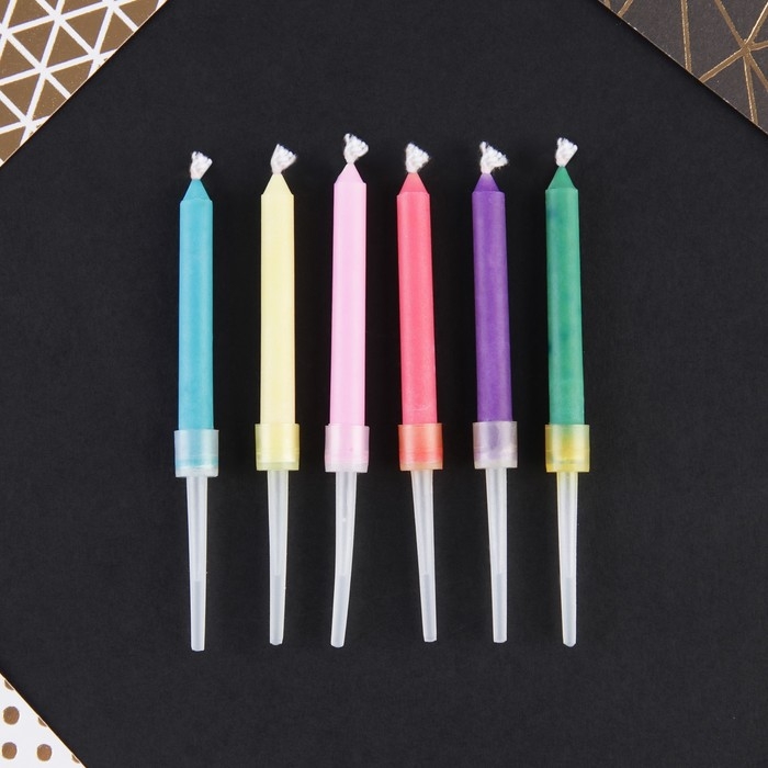 Свечи для торта - это неотъемлемый атрибут праздника. Набор свечей станет прекрасным украшением торта и других кондитерских изделий по случаю дня рождения, юбилея и любого другого торжества. Украсьте угощение стильными свечами, чтобы сделать особенный день ещё более ярким и незабываемым. Свечи укомплектованы пластиковыми держателями для удобства размещения в торте или другом кондитерском изделии. Изготовлены из высокоочищенного пищевого парафина, который не влияет на вкусовые качества блюд, а удобная упаковка помогает сохранять свечи при длительном хранении и транспортировке.
