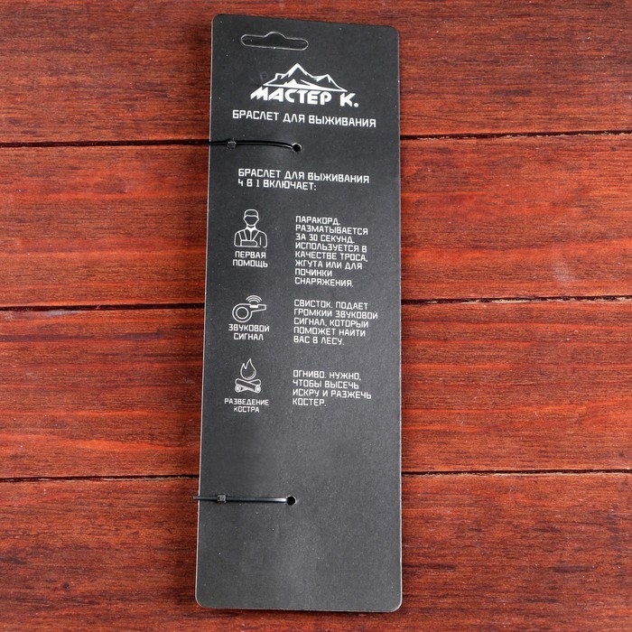 Изделие представляет собой верёвку, сплетённую в компактный аксессуар. При необходимости браслет можно размотать за 30 секунд и использовать в качестве троса, жгута или ловушки.