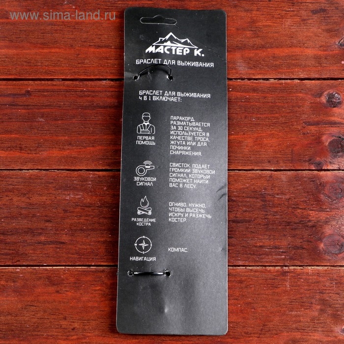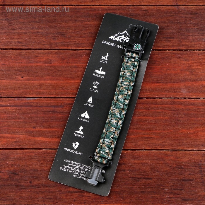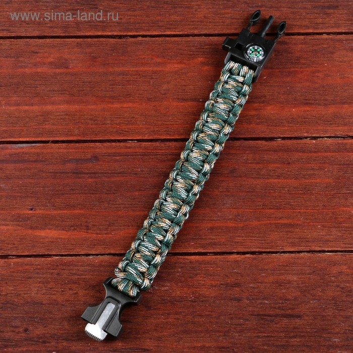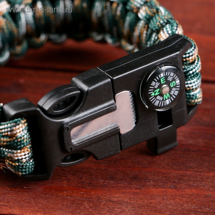 Браслет для выживания 4в1(паракорд, компас,свисток,огниво), 25.5 × 2.5 см, 3 м