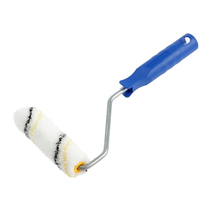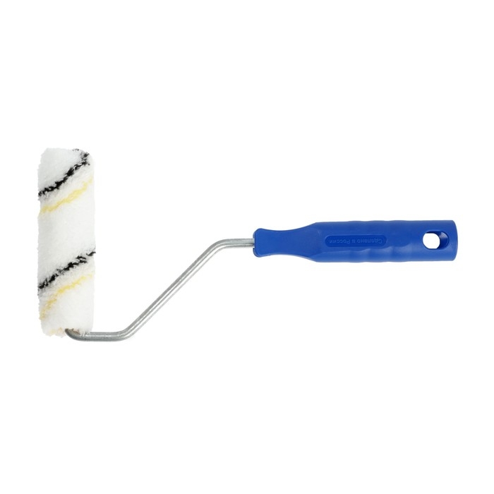 Валик состоит из пластмассового цилиндра, мягкой шубки, бугеля — изогнутого металлического стержня — и удобной пластиковой рукоятки.