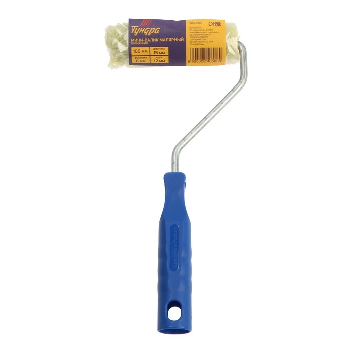 Мини-валик ТУНДРА, велюр, 100 мм, рукоятка d=6 мм, D=15 мм, ворс 5 мм