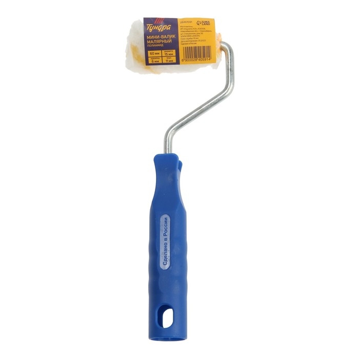 Мини-валик ТУНДРА, полиамид, 60 мм, рукоятка d=6 мм, D=15 мм, ворс 11 мм