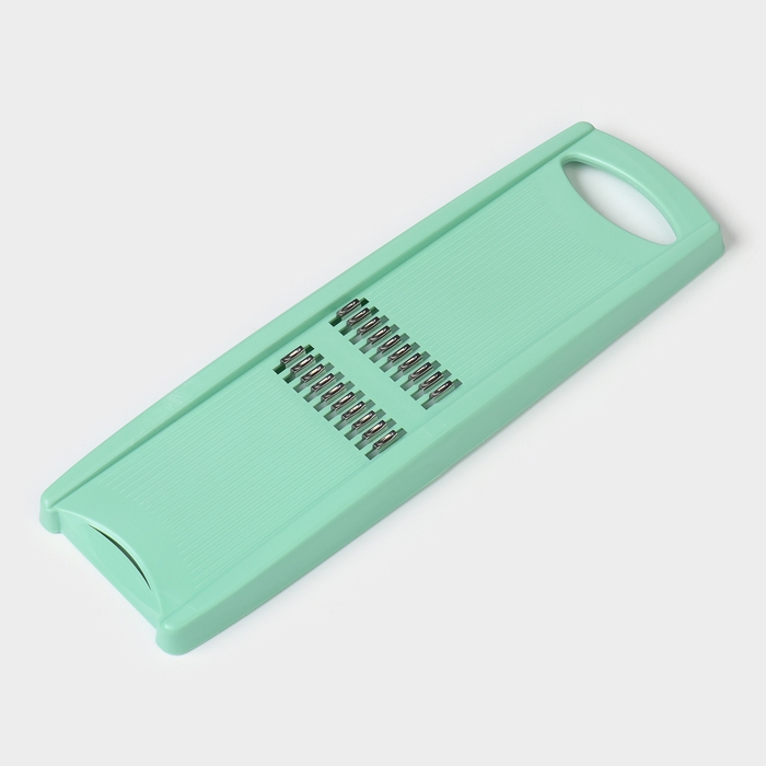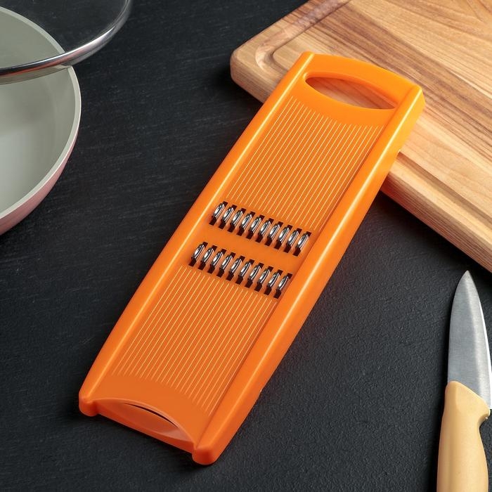 А вы знали, что в салате из корейской морковки находится много витаминов? С помощью удобной и острой тёрки вы быстро приготовите необходимое количество морковки. Пользоваться очень просто: расположите тёрку над тарелкой, придерживая ручку, двигайте морковкой по режущей поверхности снизу-вверх. Также тёрка идеально подходит, чтобы сделать поджарку для супа. Кухонный помощник поможет приготовить любимые салаты из редиса, огурца, яблока, лука, капусты и много другого.