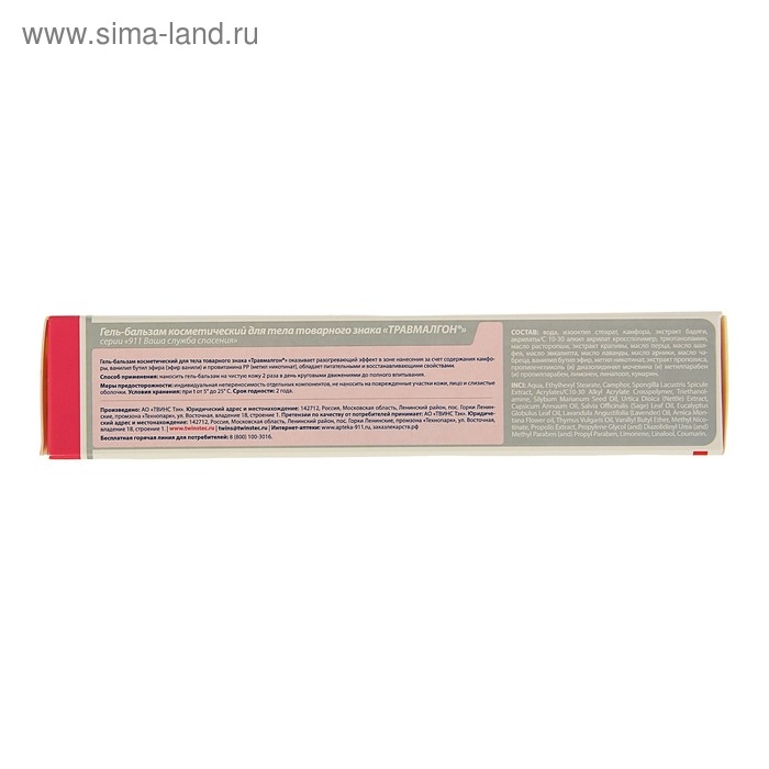 Гель для тела 911 "Травмалгон" при боли в спине и травмах, 100 мл