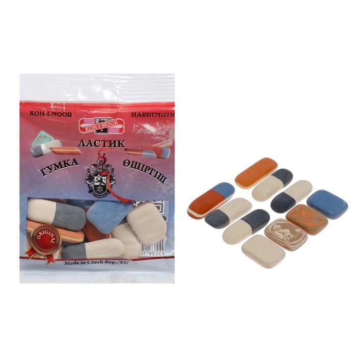 Ластики Koh-I-Noor предназначены для стирания следов чернографитных карандашей, чернил, туши. Они с лёгкостью удаляют надписи, не повреждая поверхность бумаги. Ластики изготовлены из натурального каучука. Хорошо подходят для школьных занятий и творчества.