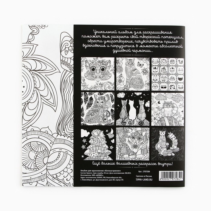 Раскраска - антистресс, альбом «Котонастроение», 20 стр.