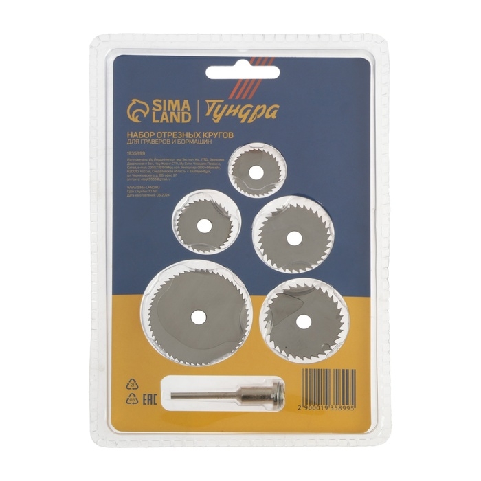 Набор кругов отрезных для граверов и бормашин ТУНДРА, 5 насадок и адаптер 3.2 мм