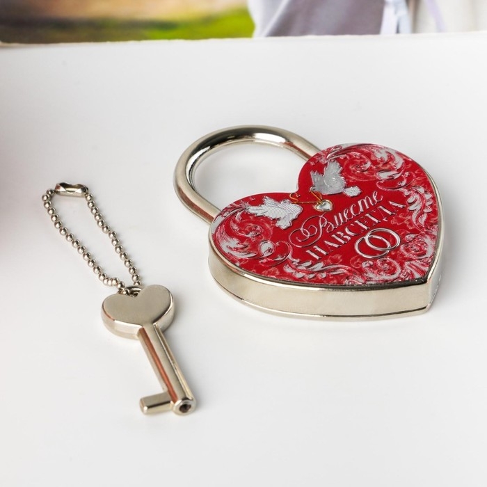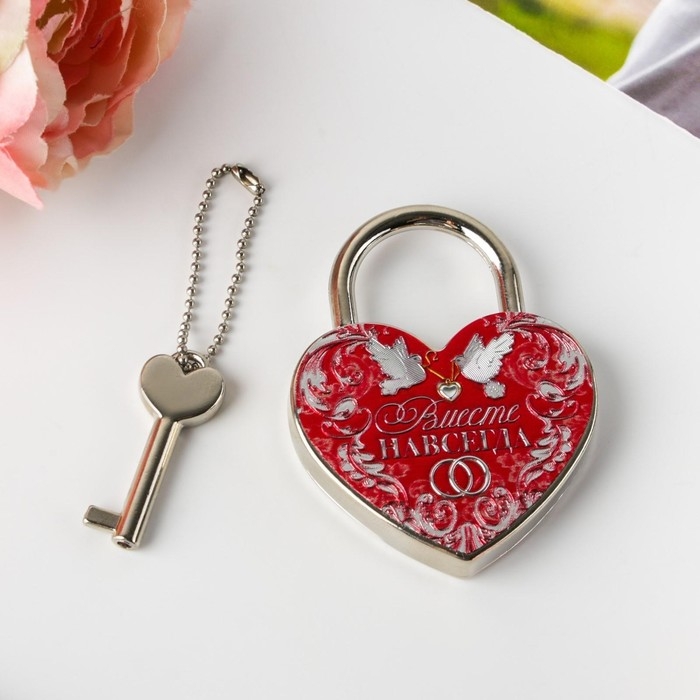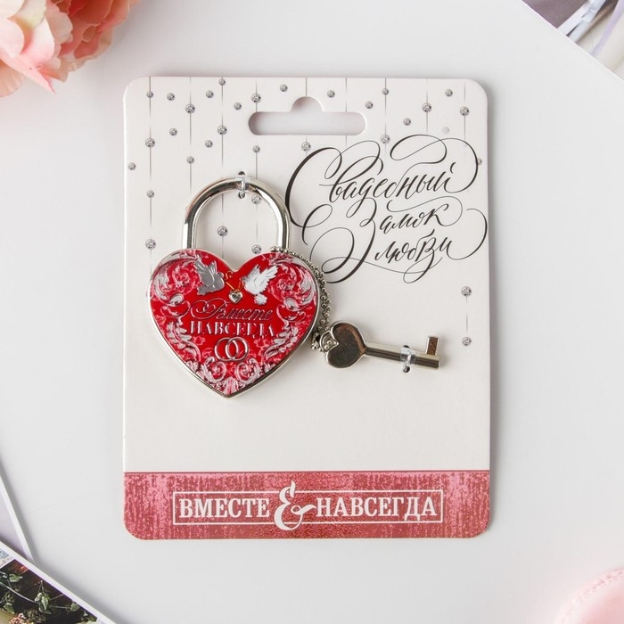 Замок для торжественной свадебной традиции - это символ любви. Навесной замок любви на свадьбе становится символом нерушимого союза, заключенного влюбленными в этот день. По традиции замок вешается на мост, загадывается желание о счастливой семейной жизни, а ключи от него выбрасываются в реку, через левое плечо. Это делается для того, чтобы никто никогда не смог открыть этот замок и нарушить клятву, данную влюбленными. Свадебный замок можно повесить на мост по традиции или на дерево в специалных парках или аллеях молодожен, которые есть во многих городах. Замок навесной свадебный имеет в комплекте ключик, замок закрывается и открывается. Традиция закрывать замок на свадьбу объединяет сердца мужа и жены навсегда. Свадебный декоративный замочек будет отлично смотреться на фотосессии и видео.