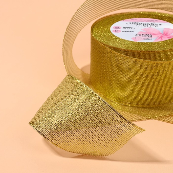 Лента парчовая, 50 мм, 23 ± 1 м, цвет золотой