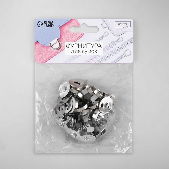 Кнопки магнитные, d = 18 мм, 10 шт, цвет серебряный
