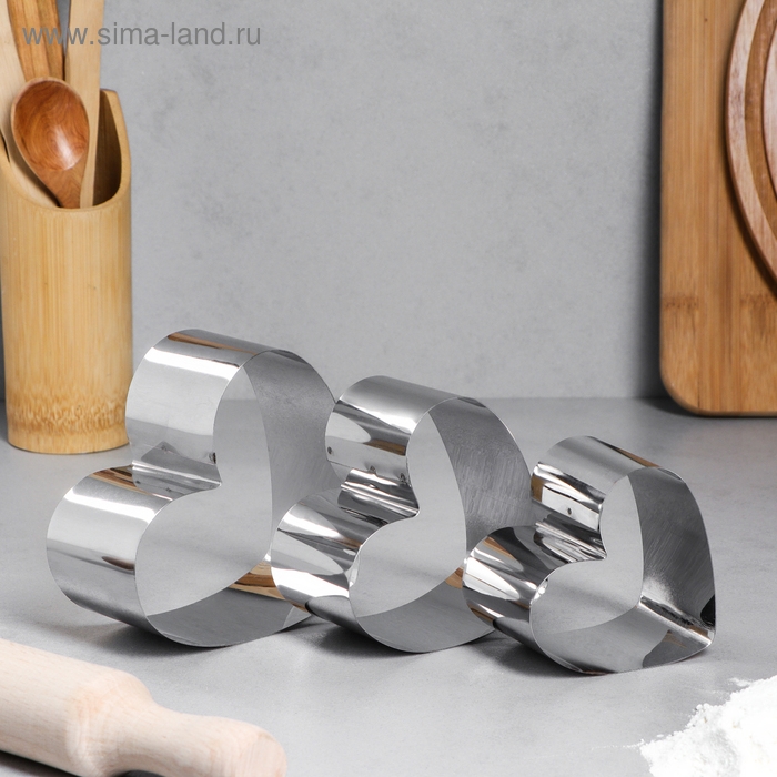 Набор форм для выпечки и выкладки «Сердце», 11х10х5 см, 3 шт