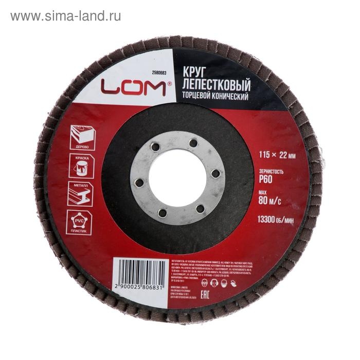 Круг лепестковый торцевой конический ЛОМ, 115 х 22 мм, Р60