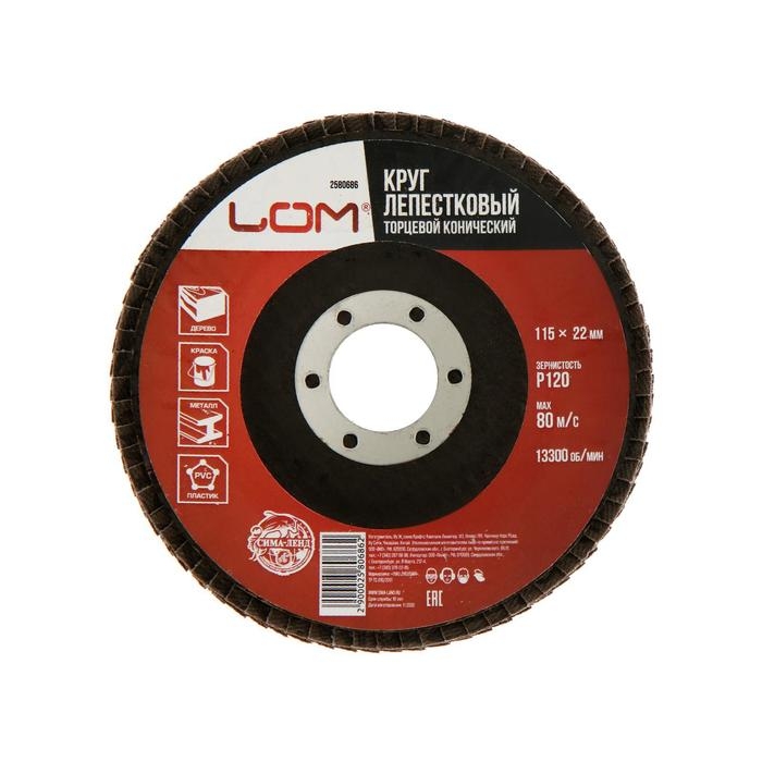 Круг лепестковый торцевой конический ЛОМ, 115 х 22 мм, Р120