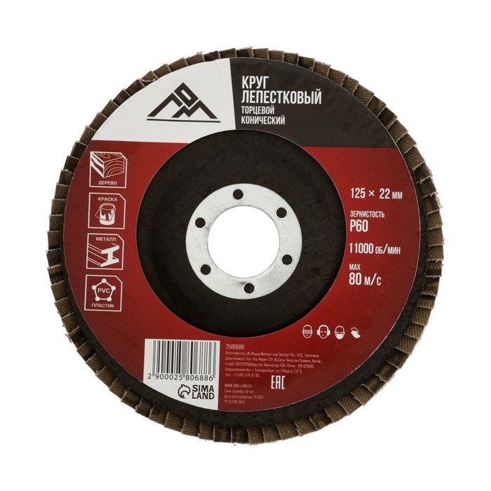 Круг лепестковый торцевой конический ЛОМ, 125 х 22 мм, Р60