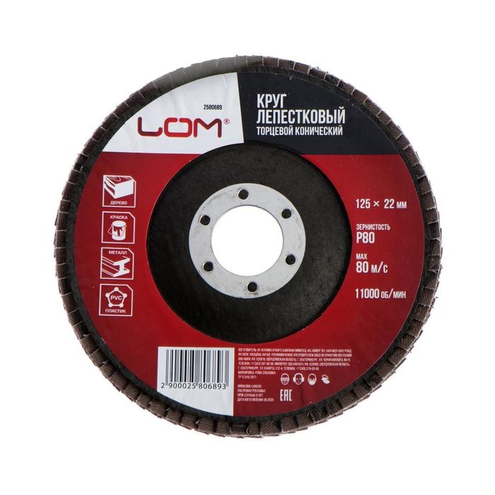 Круг лепестковый торцевой конический ЛОМ, 125 х 22 мм, Р80