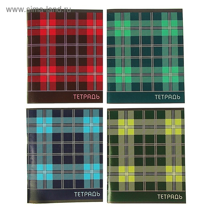 Тетрадь 96 листов в клетку "Шотландка", обложка мелованный картон, блок №2, белизна 75% (серые листы), МИКС