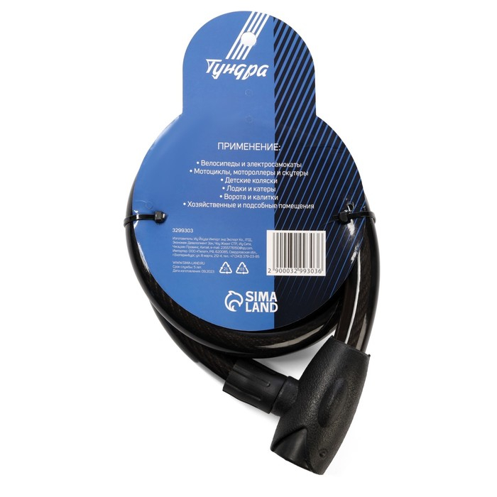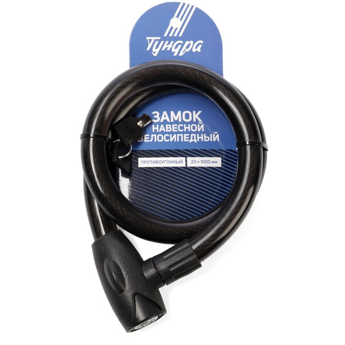 Замок навесной велосипедный ТУНДРА, 23х1000 мм, специальный ключ с пластиковой ручкой