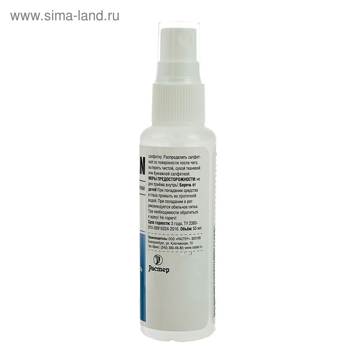 Способ применения: распылить средство на поверхность, подлежащую обработке или на салфетку. Распределить салфеткой по поверхности после чего, вытереть чистой, сухой тканевой или бумажной салфеткой.
