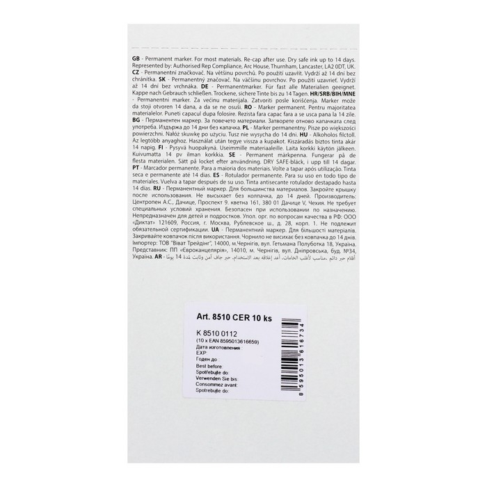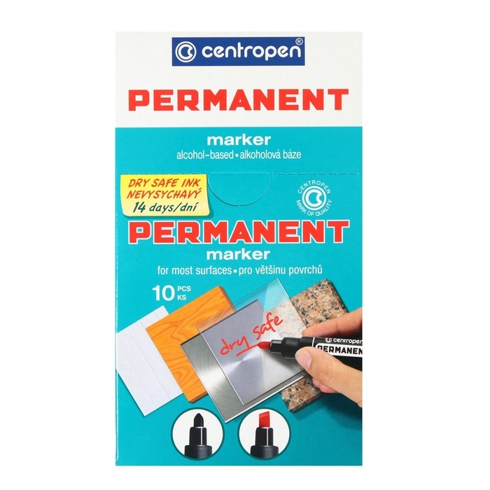 Centropen 8510 — это перманентый маркер, который предназначен для письма на любых поверхностях. Не высыхает до 14 дней без колпачка.