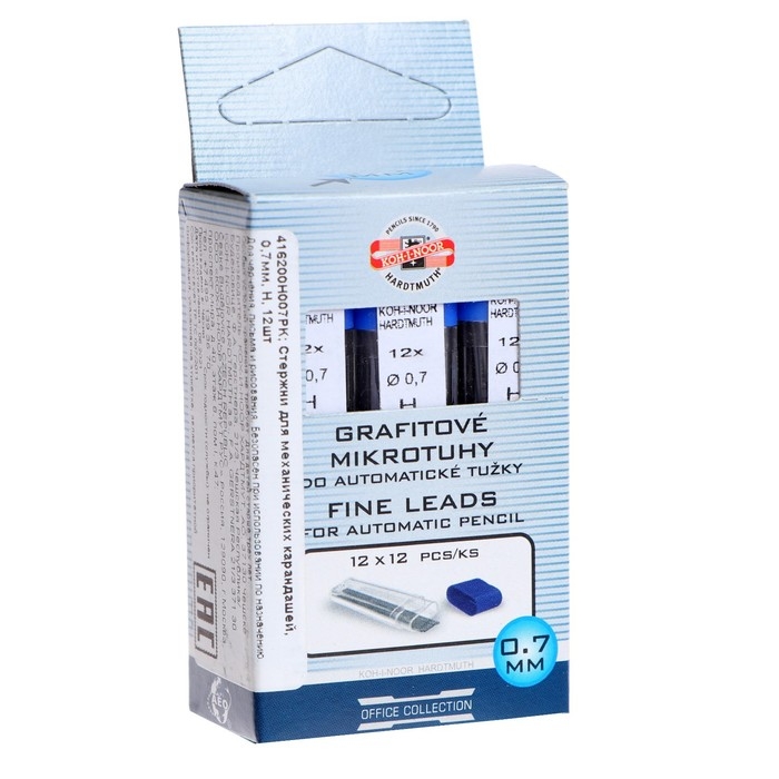 Грифели для механических карандашей 0.7 мм, Koh-I-Noor 4162 H, 12 штук, в футляре