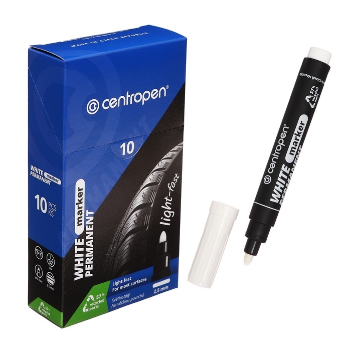 Маркер перманентный 2.5 мм Centropen 2686, линия 1,2 мм, цвет белый