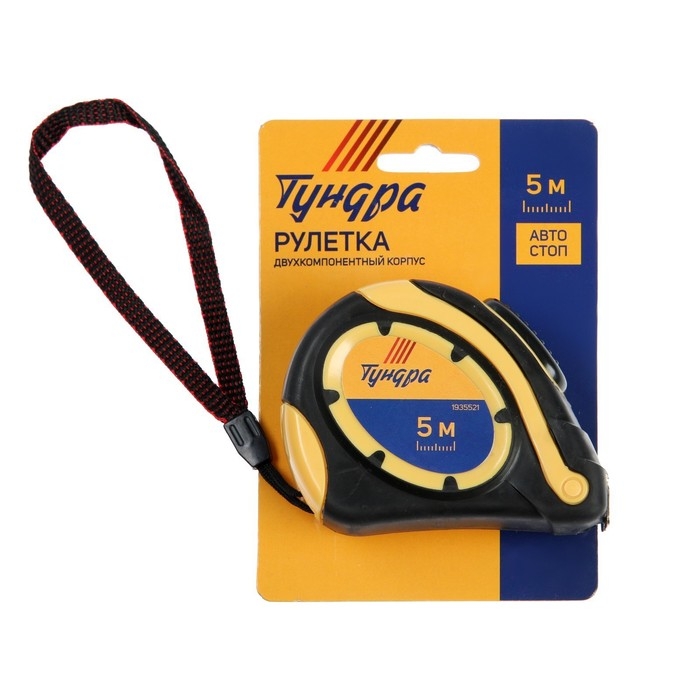 Рулетка ТУНДРА, двухкомпонентный корпус, автостоп, 5 м х 19 мм