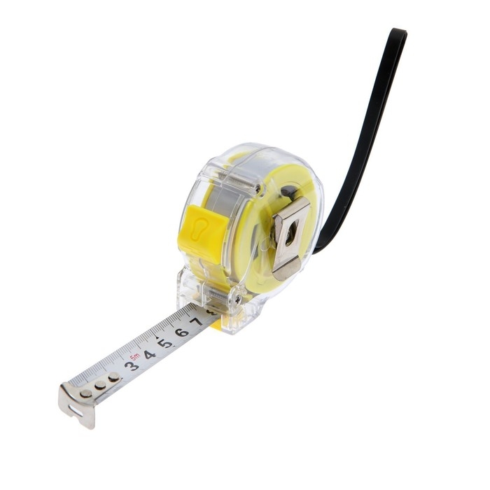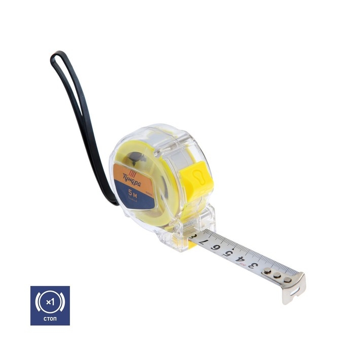 Рулетка ТУНДРА, прозрачный пластиковый корпус, 5 м х 19 мм