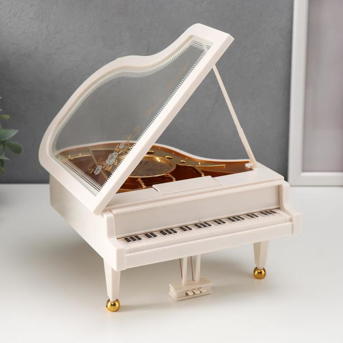 Шкатулка музыкальная механическая "Белый рояль с балериной" 10,5х17,5х18,5 см