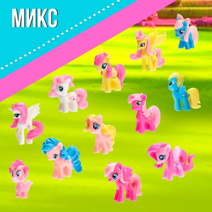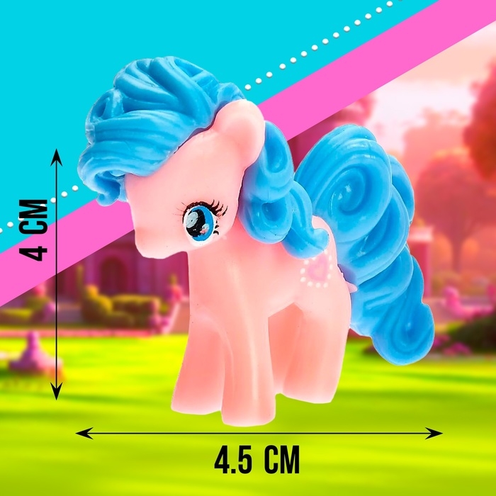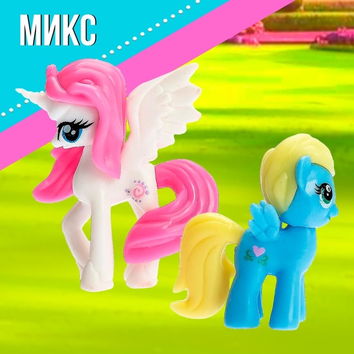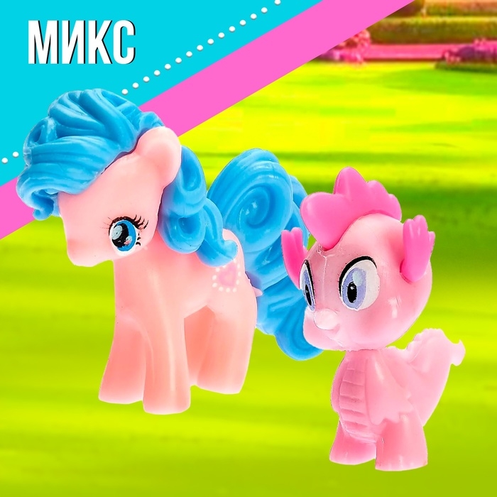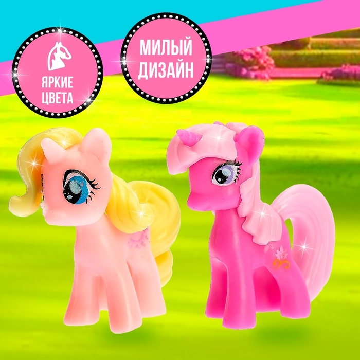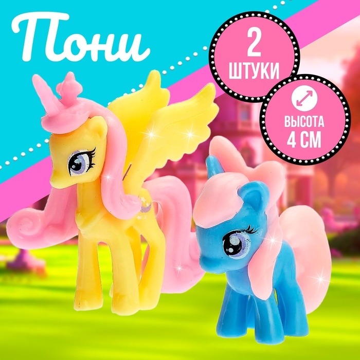- В комплект входят две пони высотой 4 см. Игрушки очень компактные, поэтому их удобно захватить с собой на прогулку, в гости и даже в путешествие!