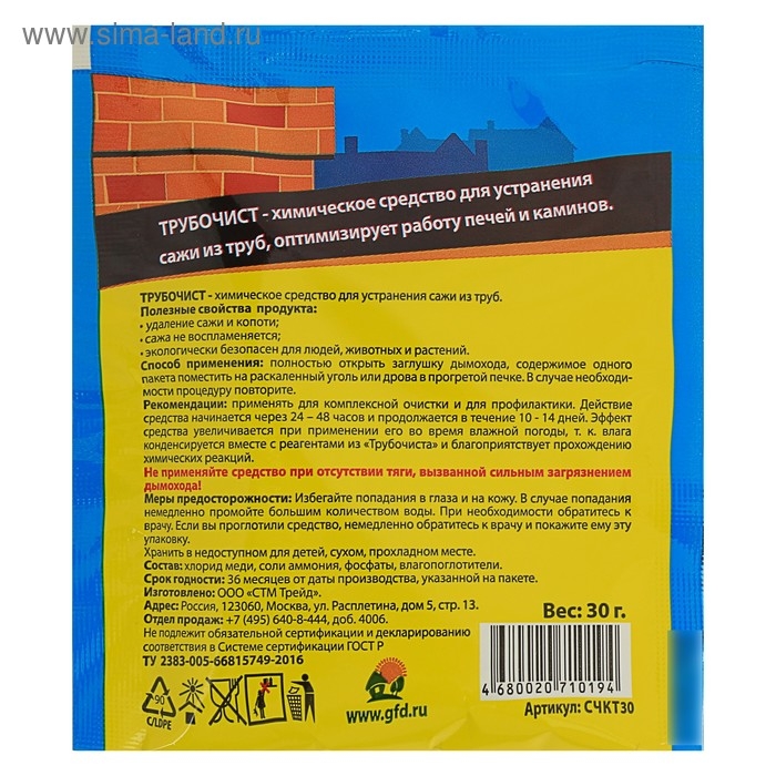 Средство для очистки дымоходов от сажи и копоти "Счастливый дачник - Трубочист", 30 г