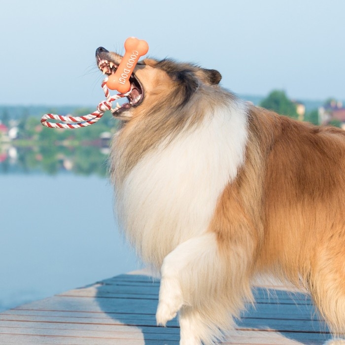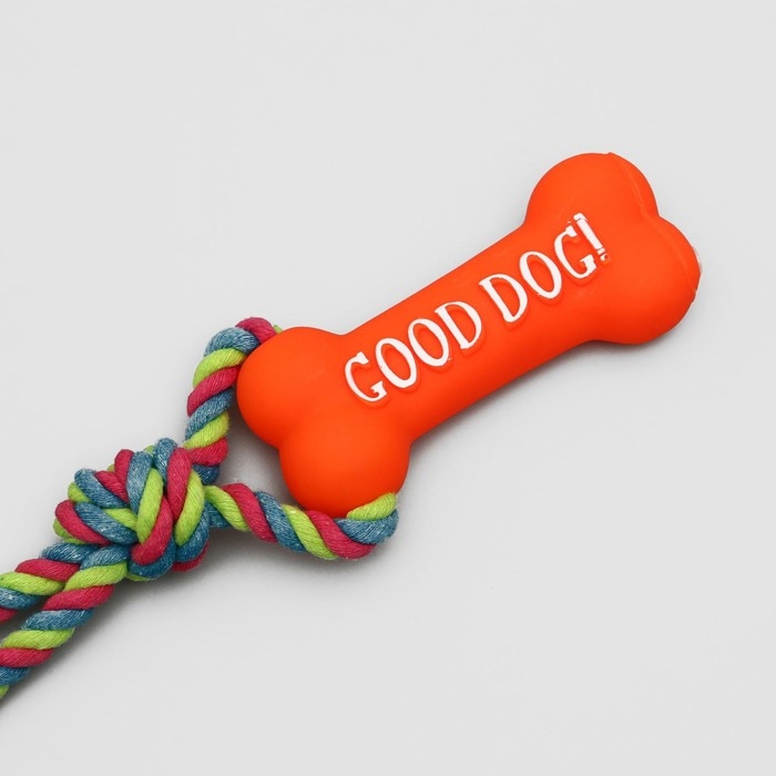 Игрушка 'Кость' из резины с ручкой из каната - это отличный выбор для активных собак, которые обожают игры и жевание! С мягкой резиновой текстурой и прочной ручкой из каната, эта игрушка обеспечивает отличное сцепление и долговечность.