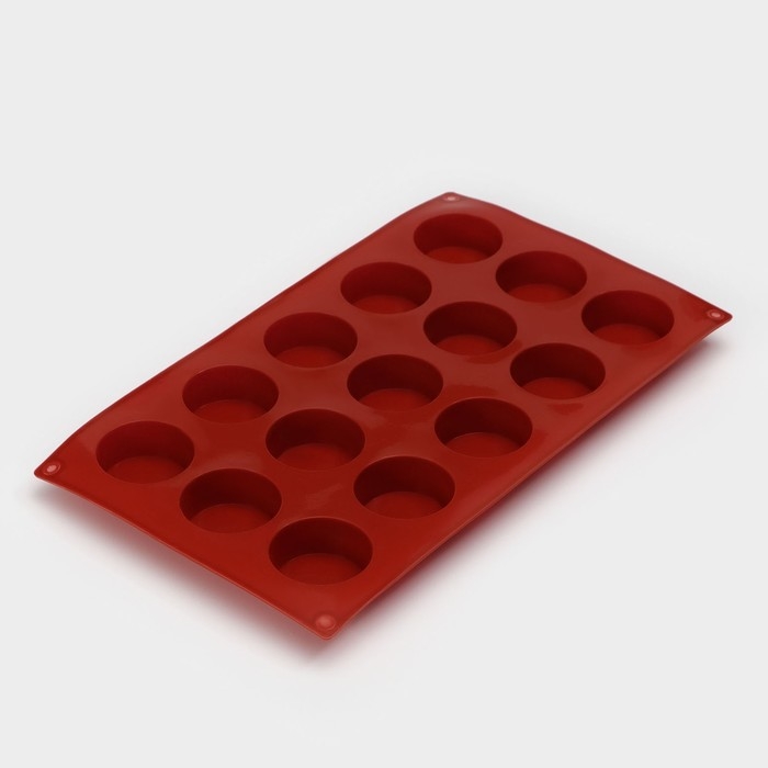 Форма для выпечки Доляна «Фигуры.Круг», силикон, 29×17×2 см, 15 ячеек (d=4,2 см), цвет коричневый