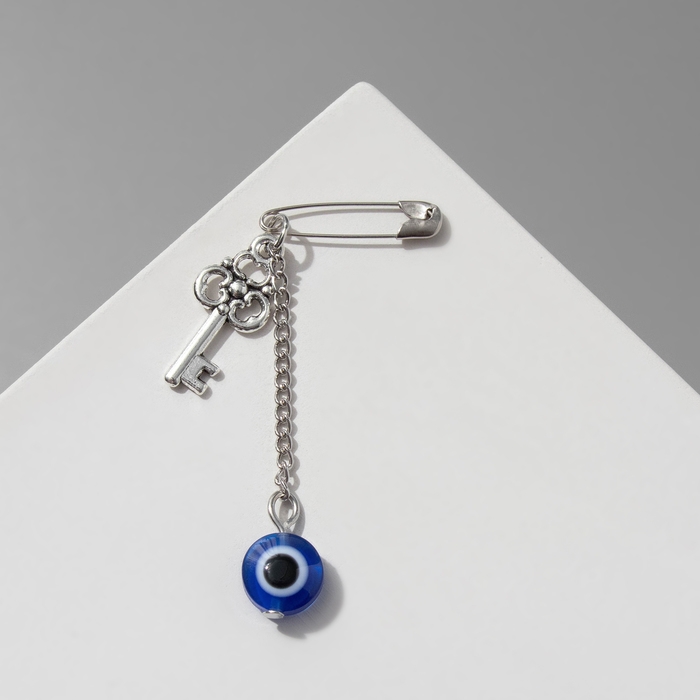 Булавка-оберег «От сглаза» 6см, цвет бело-синий в серебре