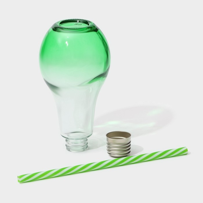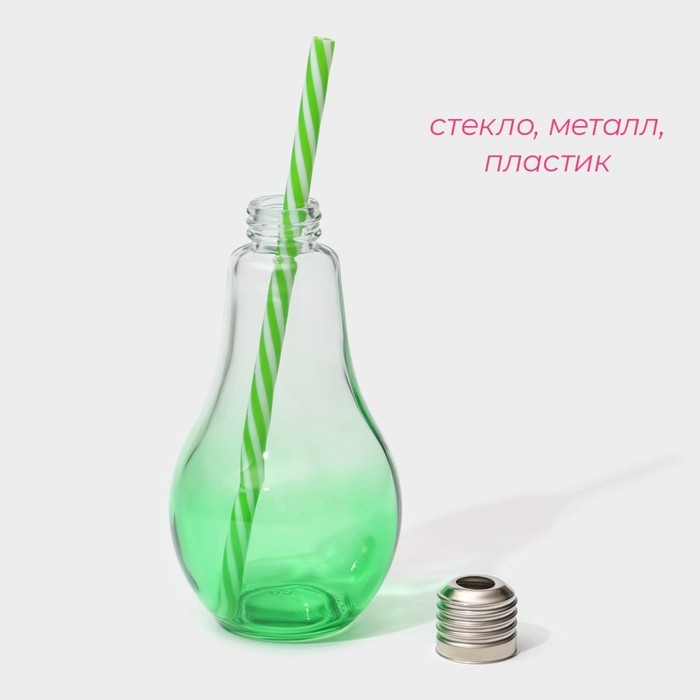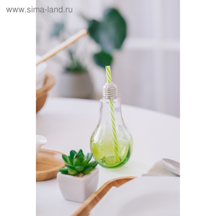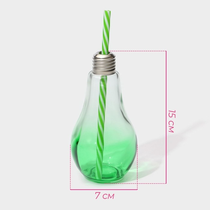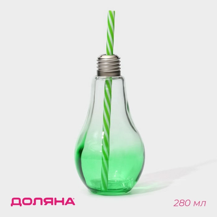 Бокал стеклянный для коктейля с трубочкой Доляна «Лампочка», 280 мл, 7×15 см, цвет МИКС