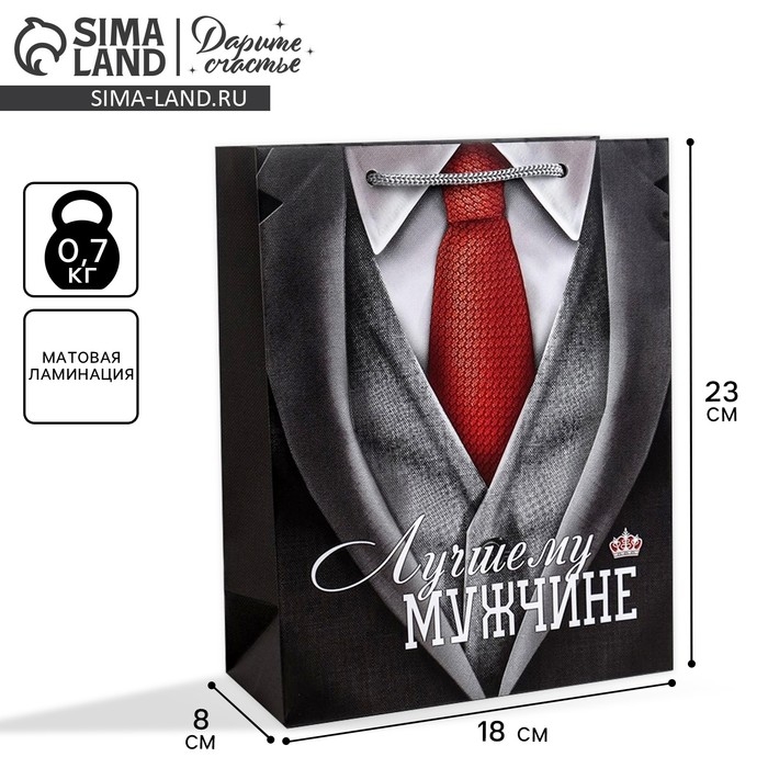Пакет подарочный ламинированный вертикальный, упаковка, «Лучшему мужчине», MS 18 х 23 х 8 см