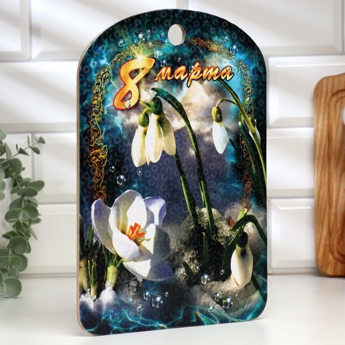 Доска разделочная большая "8 марта. Подснежники", 19,5×27,5 см